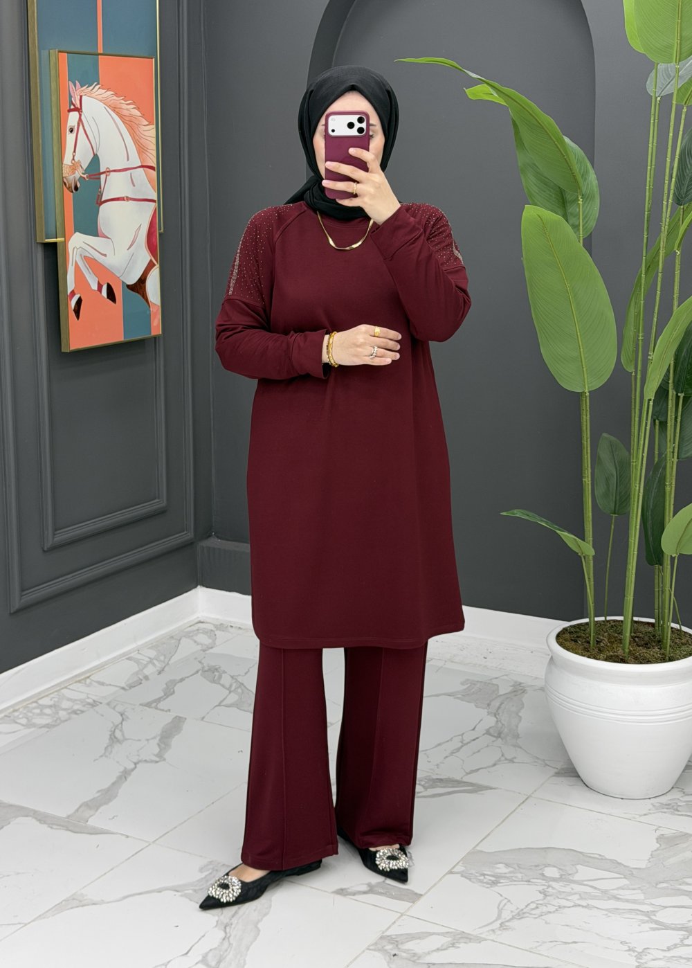 Derin pantolonlu takım