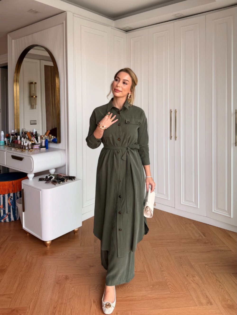 Takım Tunik Tam Boy Düğme Detaylıdır.