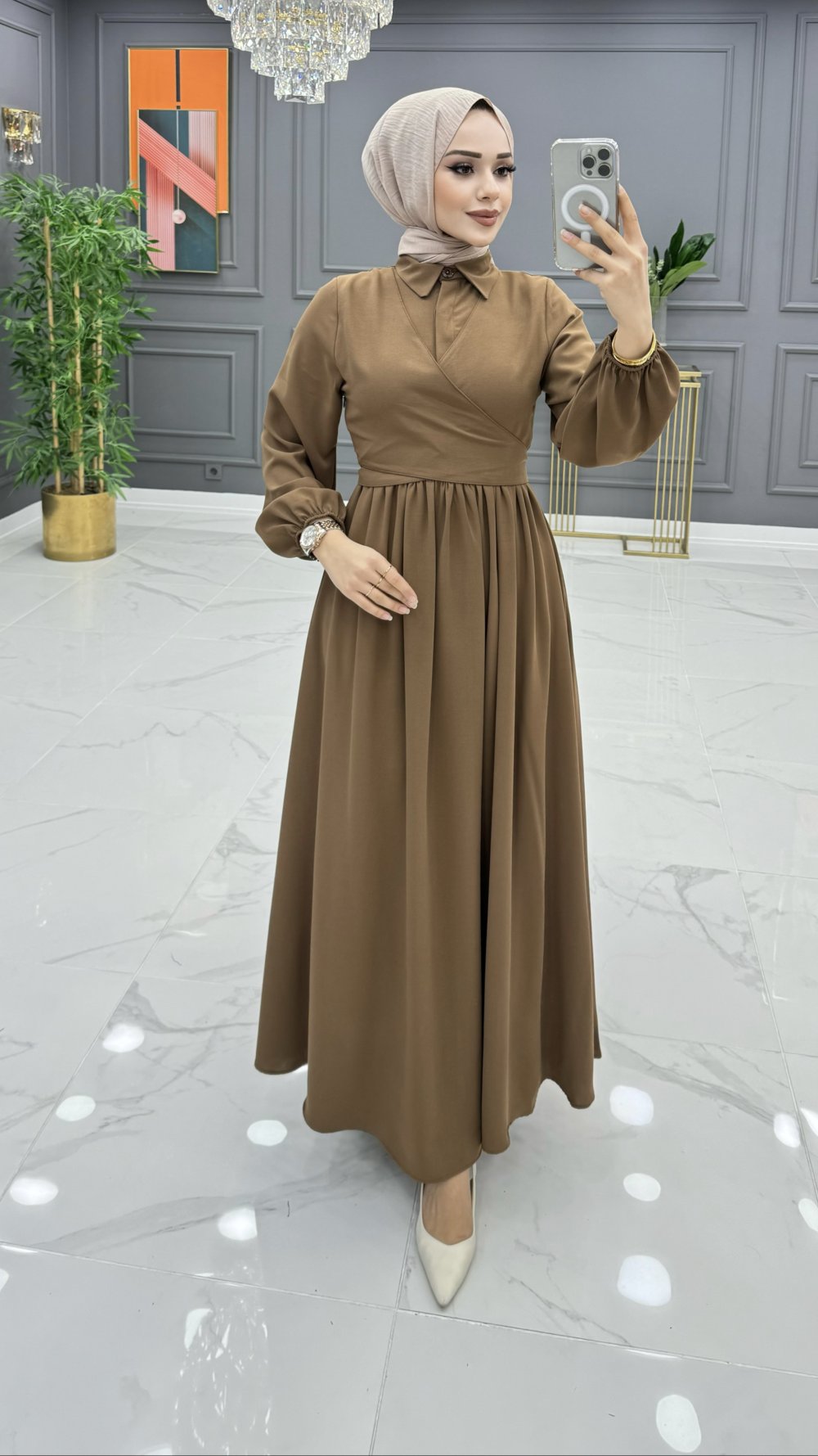 ELBİSE ÖNDEN CAPRAZ ARKADAN BAĞLAMA DETAYLIDIR.