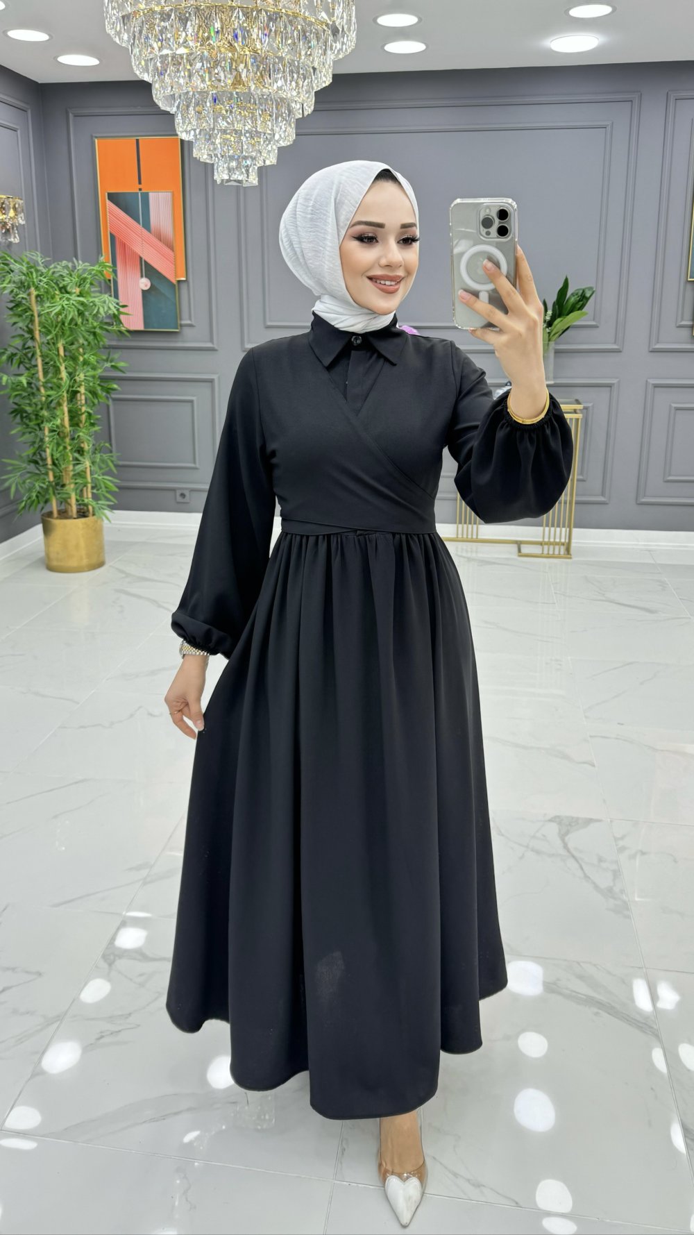 ELBİSE ÖNDEN CAPRAZ ARKADAN BAĞLAMA DETAYLIDIR.