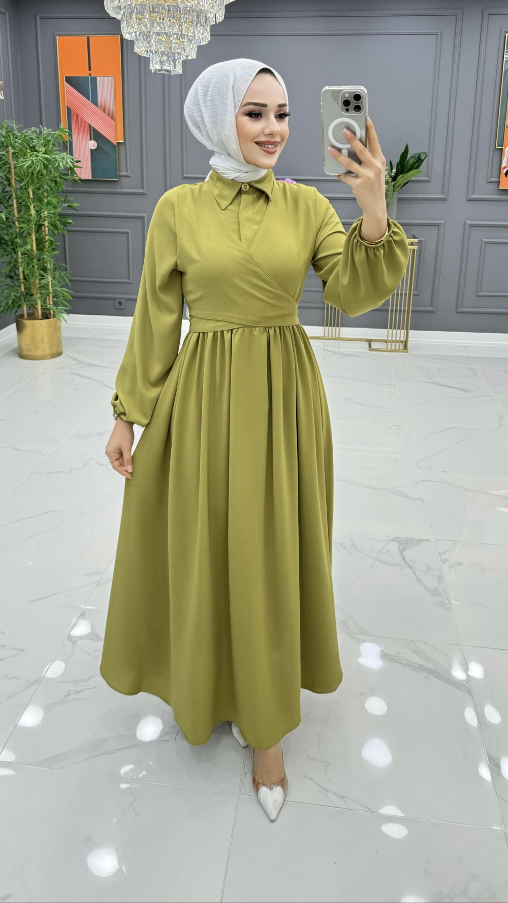Eyşan Elbise Yağ Yeşili