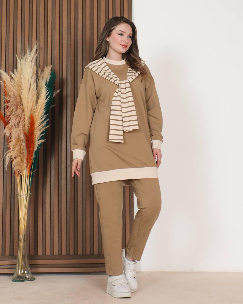 Tunik 85 cm , Çizgili Şal Birleşikir