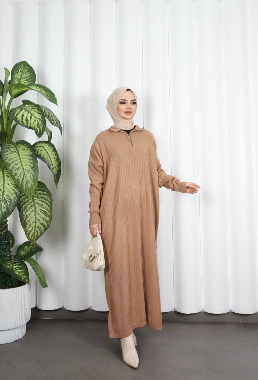 Fermuarlı Triko Elbise