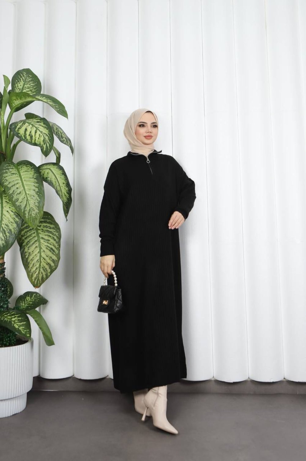 Fermuarlı Triko Elbise