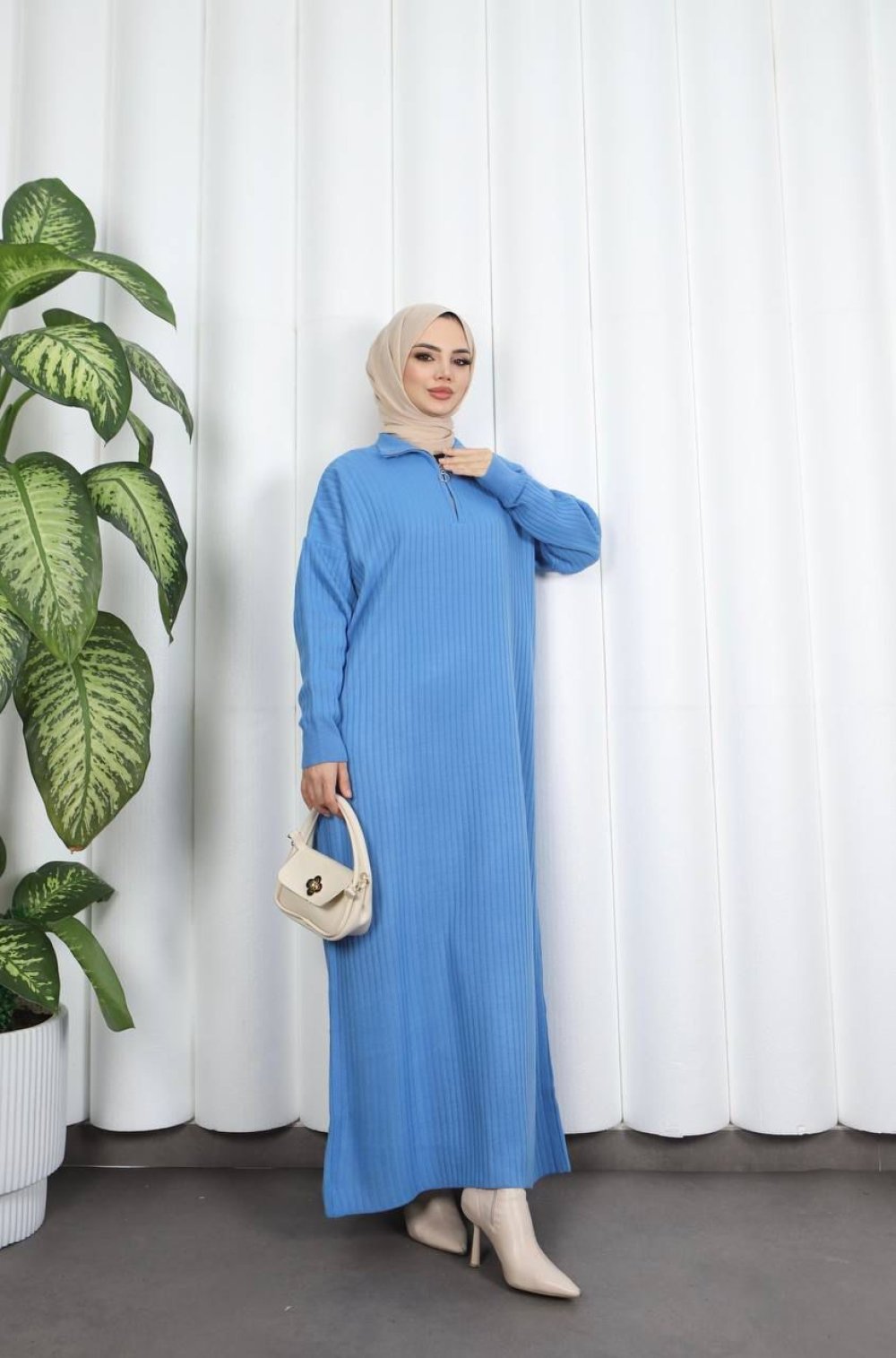 Fermuarlı Triko Elbise