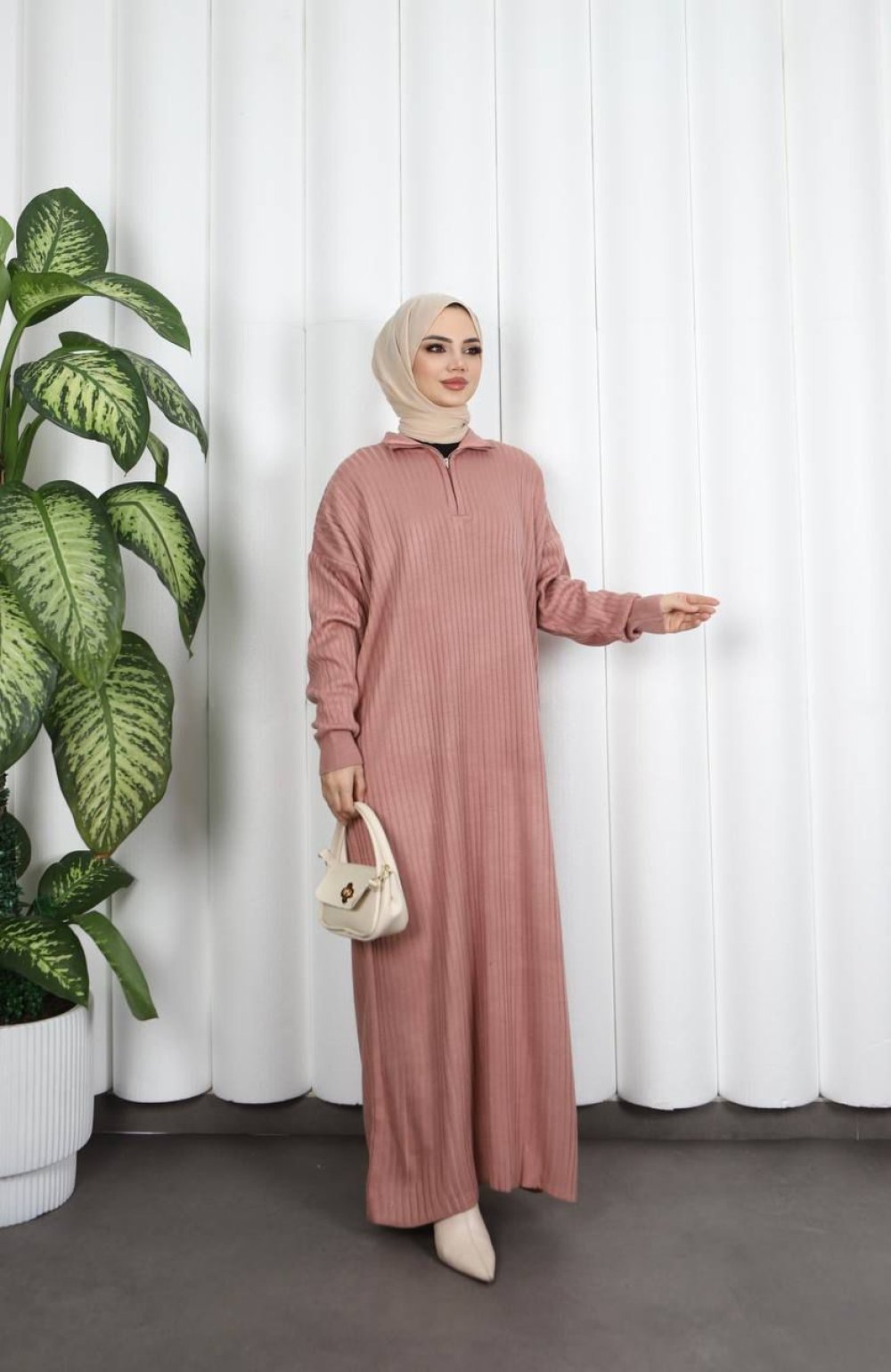 Fermuarlı Triko Elbise