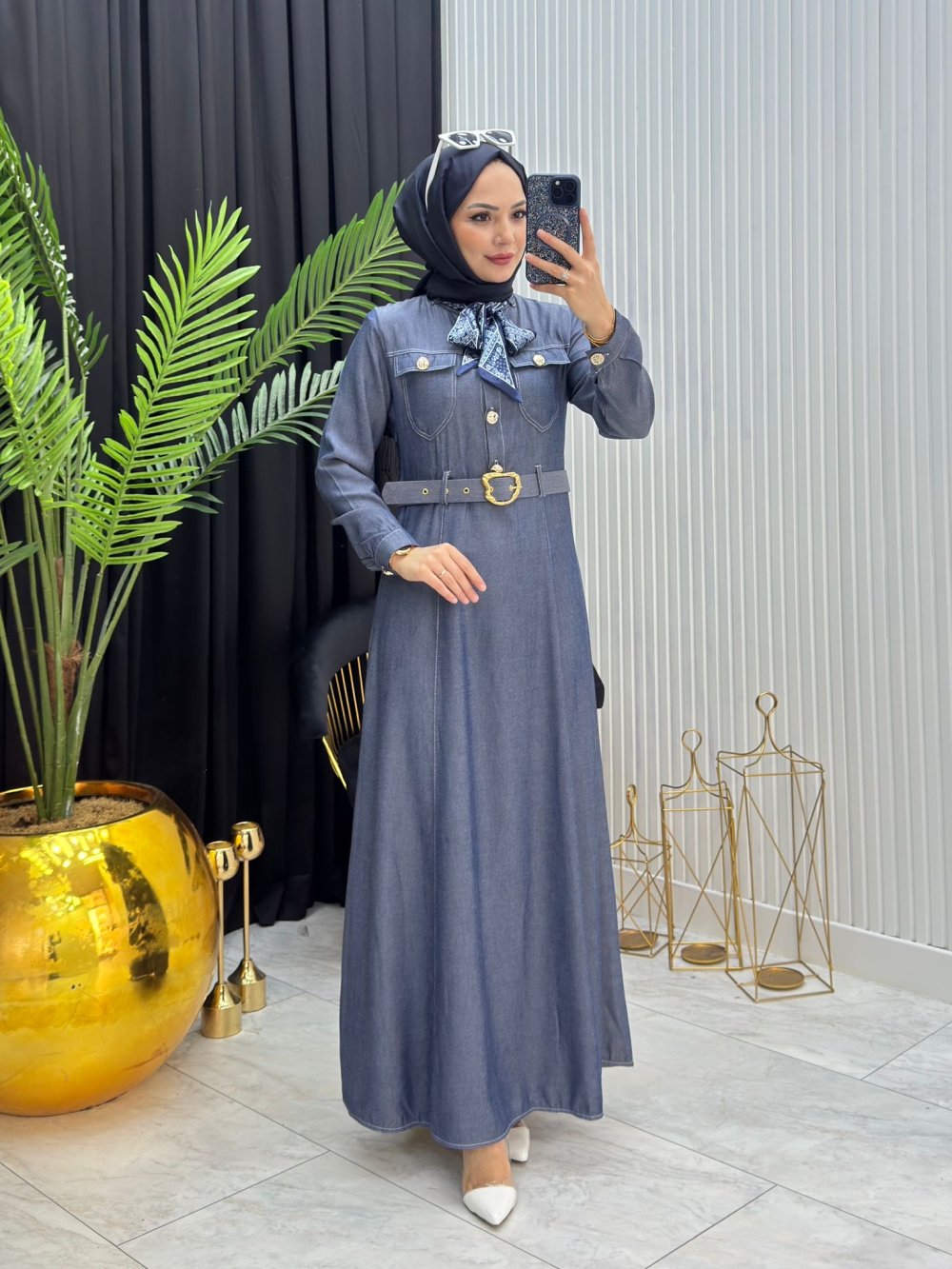 kemerli yaka Fular detaylı