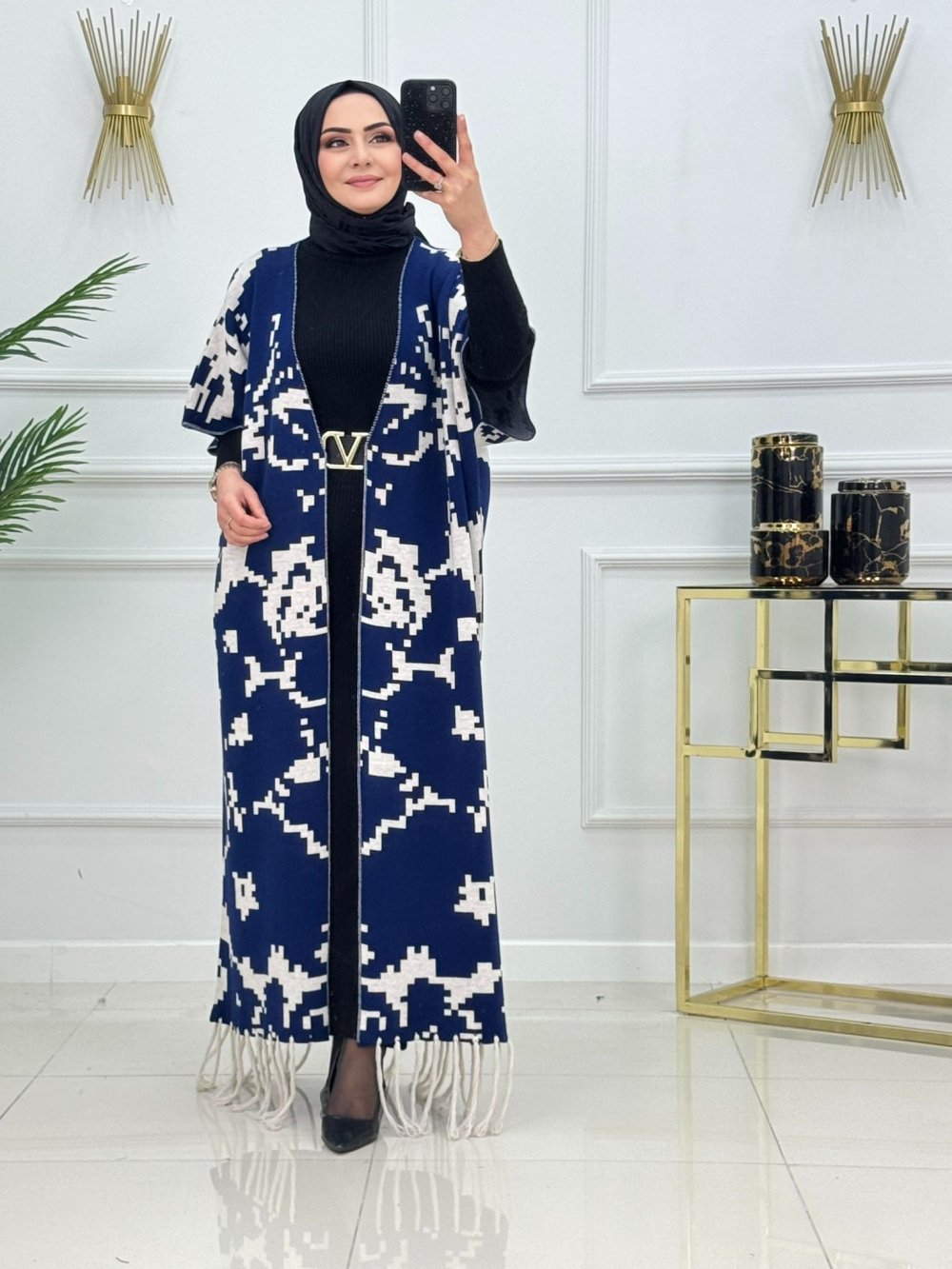 ?Ürün uzun kollu triko elbise ve kimono yelek olarak iki parçadan oluşmaktadır