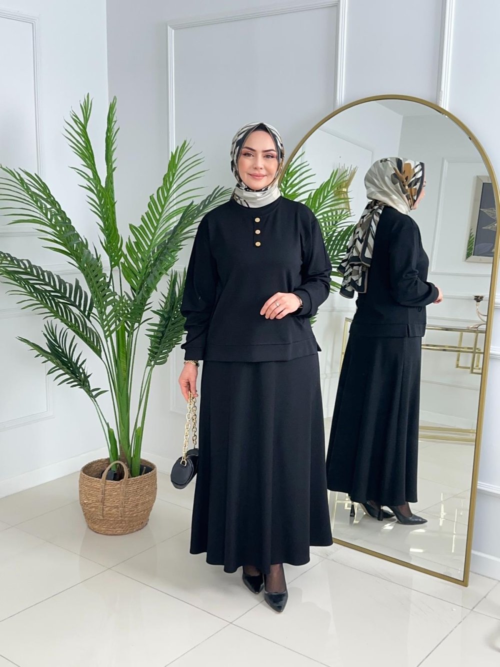 GÜLCAN ETEKLİ TAKIM - SİYAH