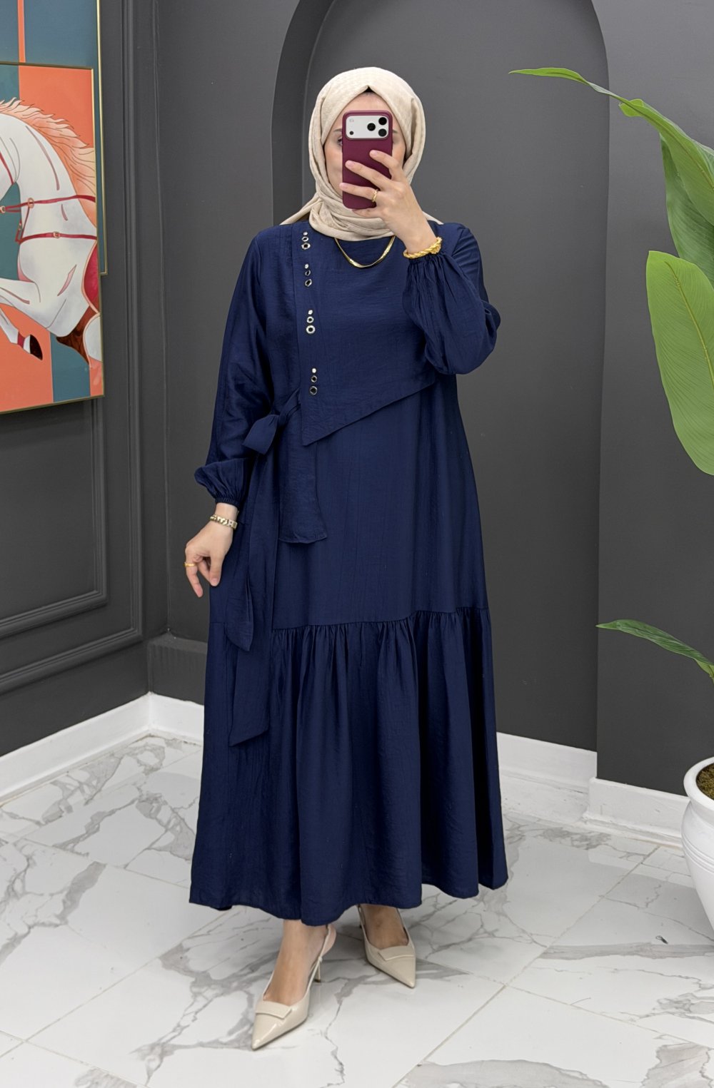 Gülseli elbise lacivert