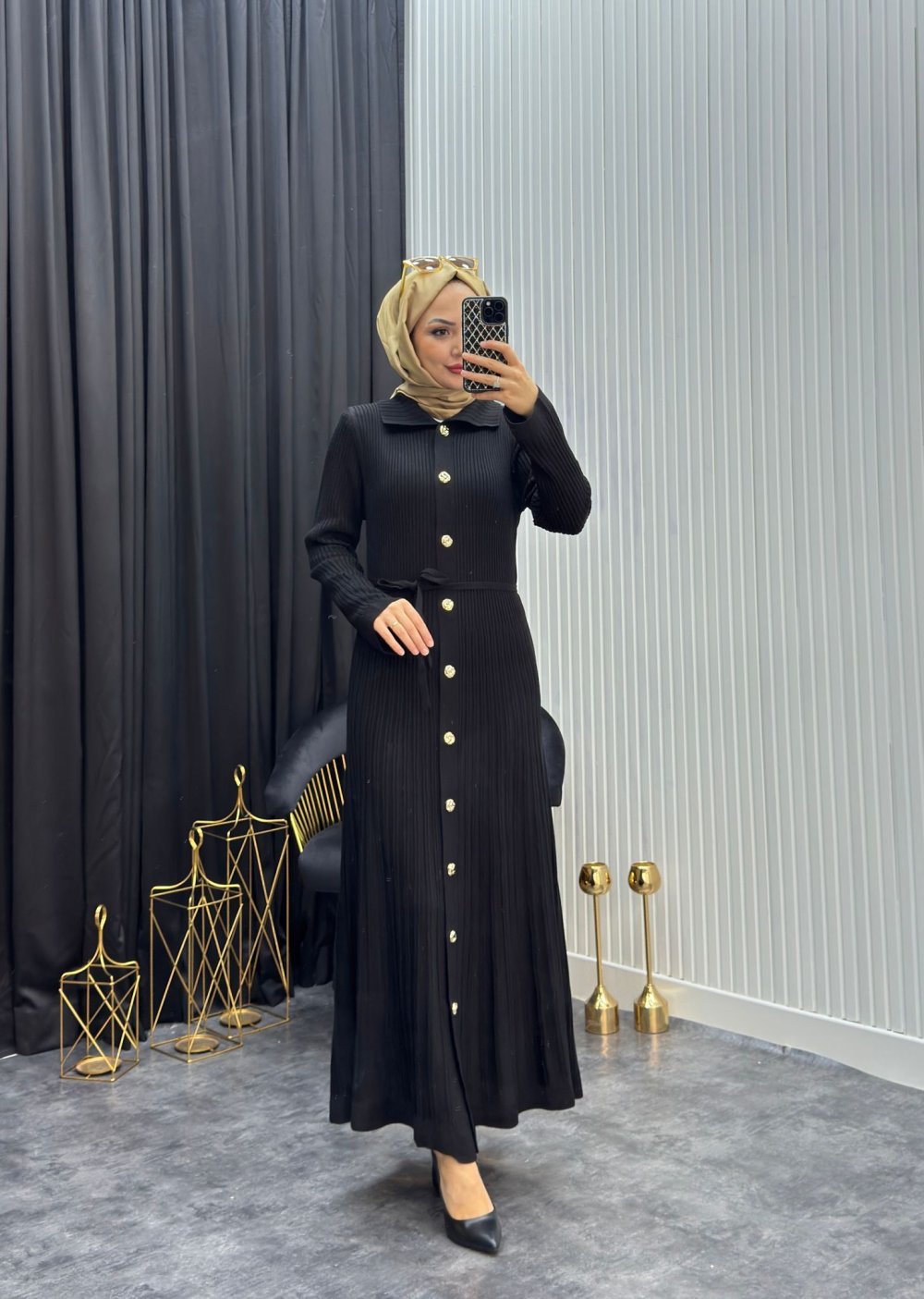 Hüda Elbise Siyah Siyah
