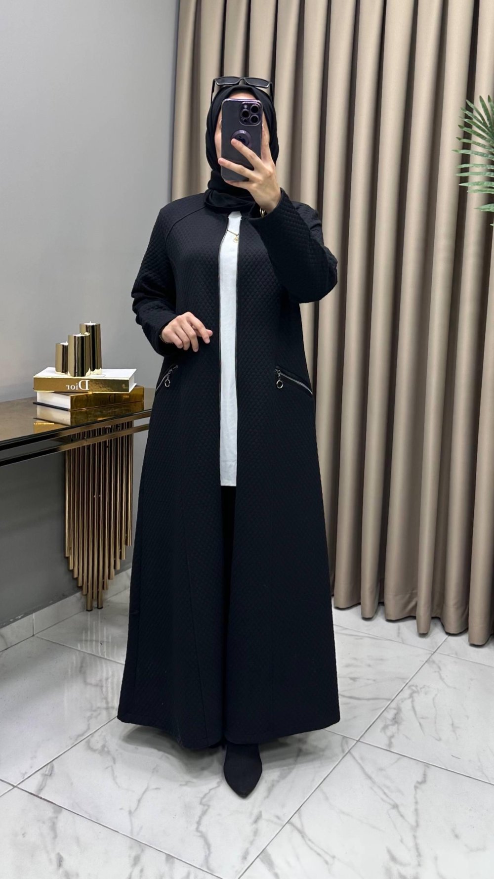 İkbal Yün Kapitone Ferace Kaban Siyah