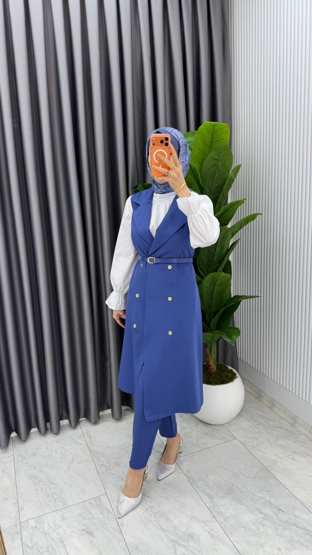İndigo Tuğba Kemerli Yelek Takım Tesettür Giyim