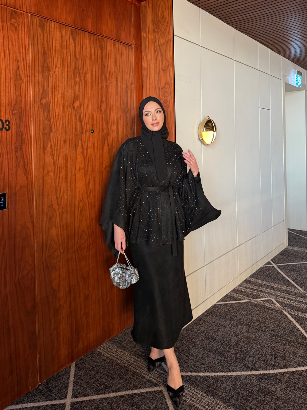 Işık Etekli Takım Siyah