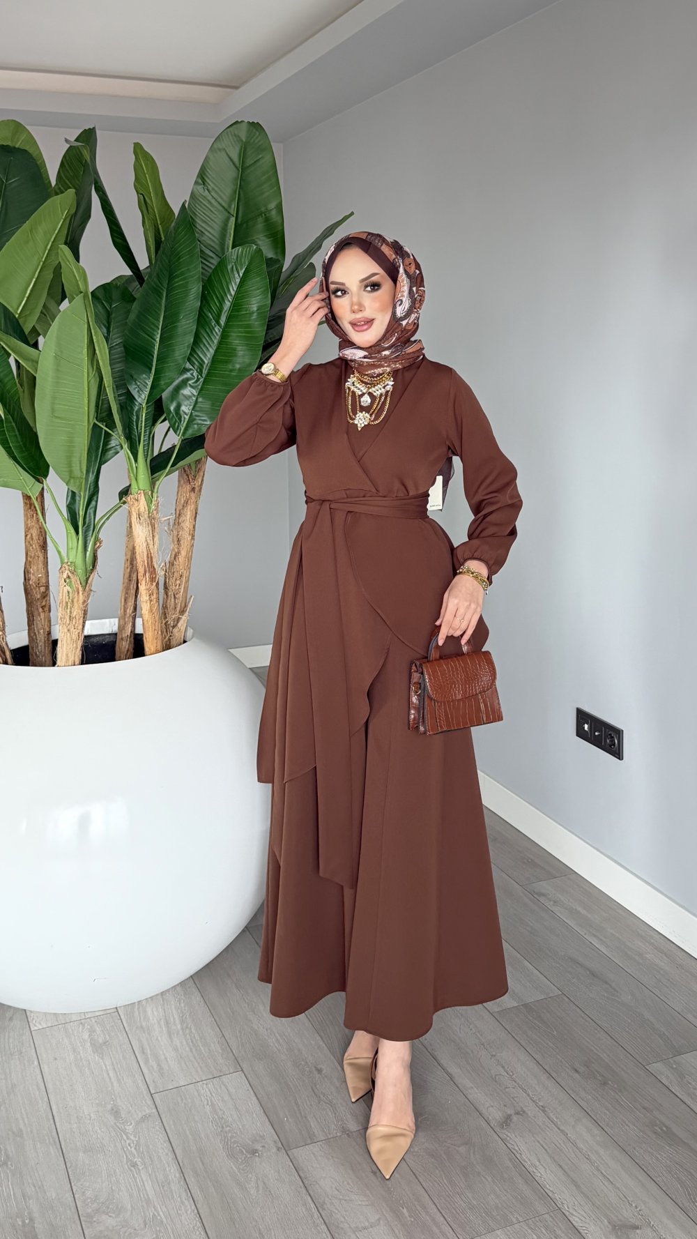 Kahverengi Cevher Pantolon Takım Tesettür Giyim