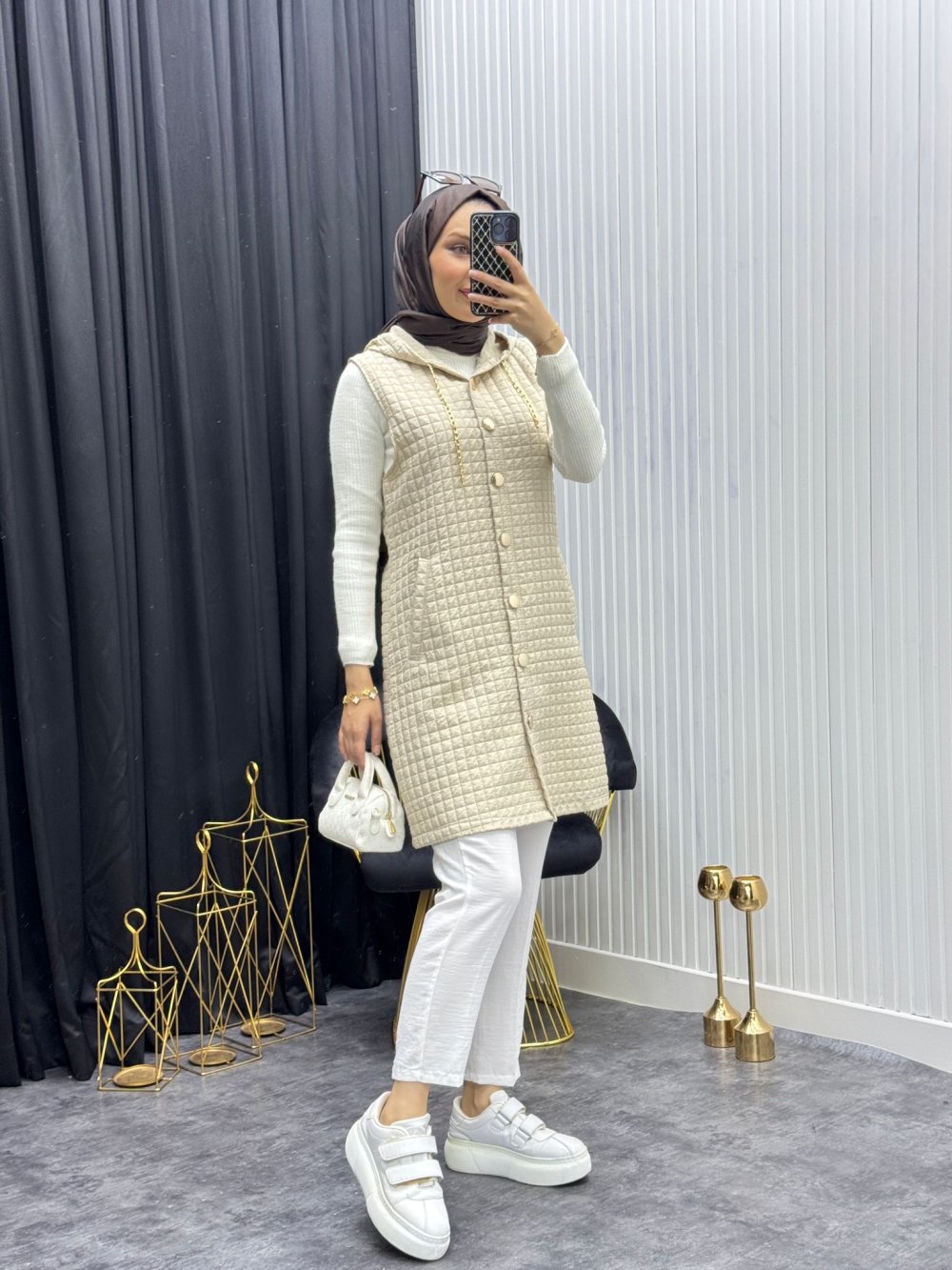 Kapitone Yelek Taş Rengi Taş Rengi