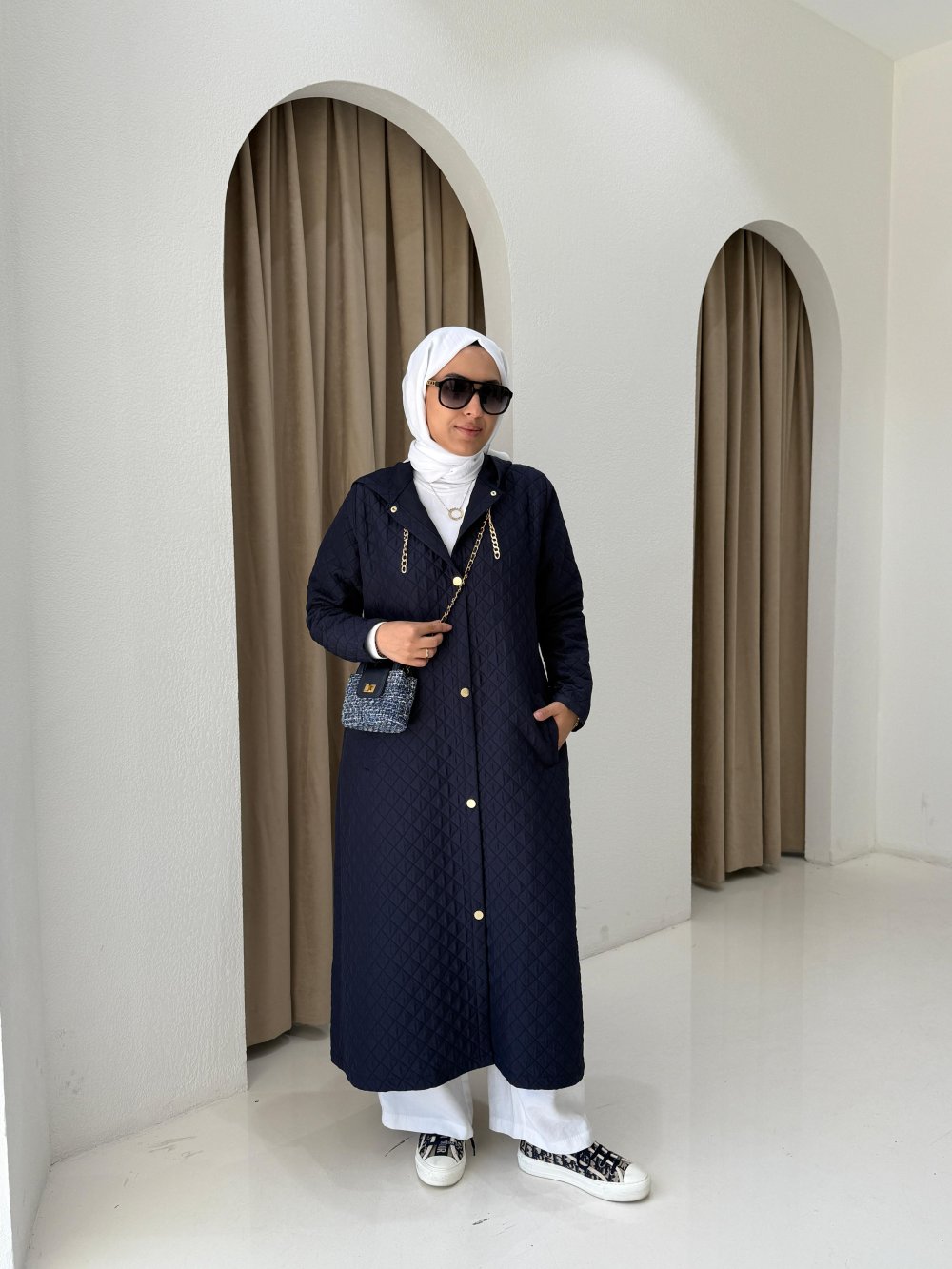 Kapüşonlu Capitone Mont Lacivert