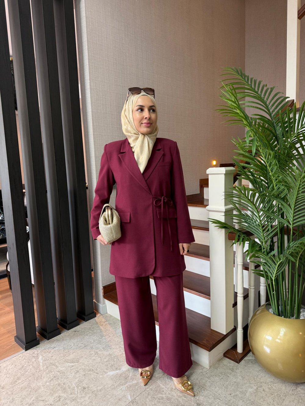 Kruvaze Ceket Takım Bordo