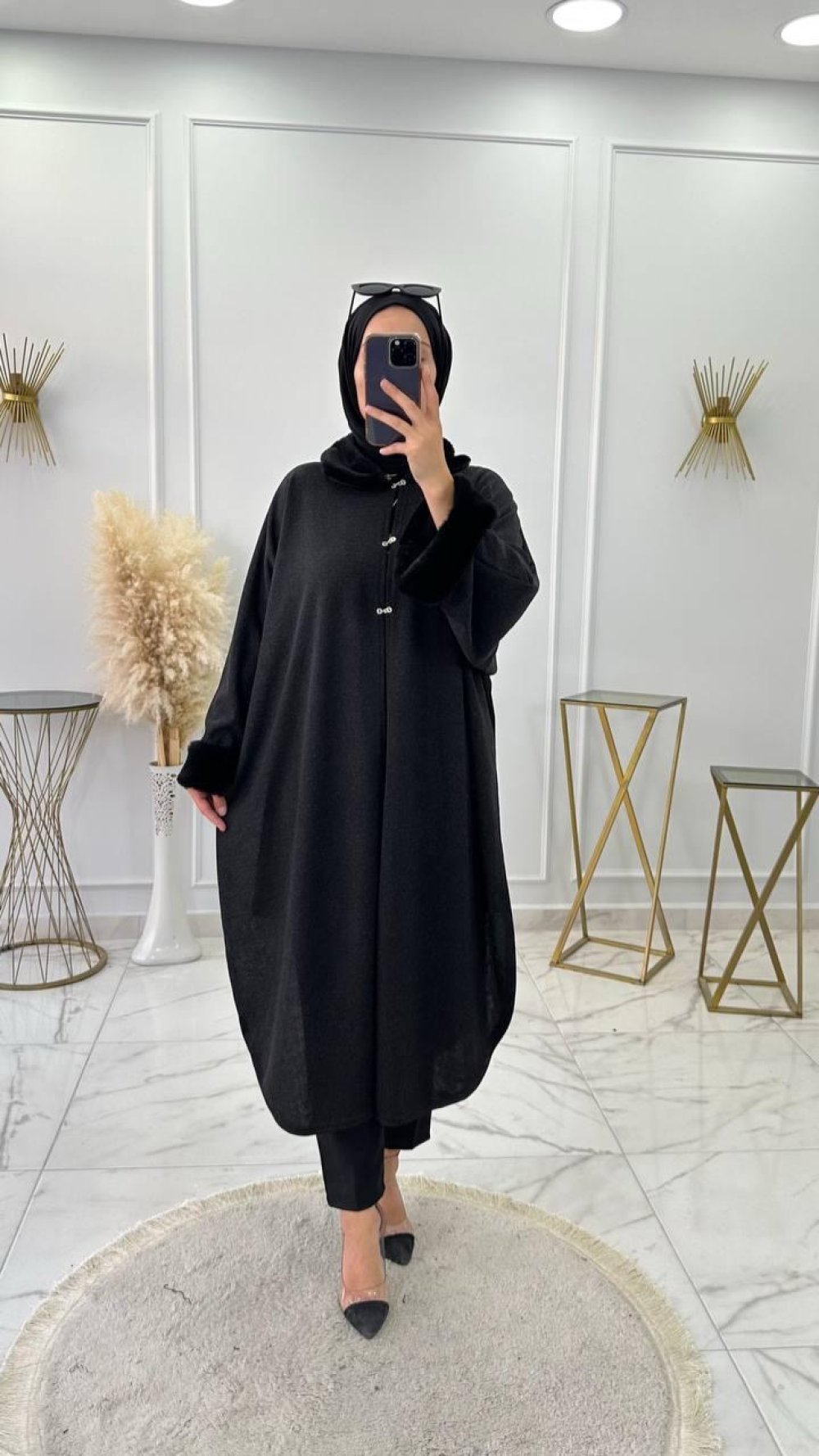 Boy 120 cm, yanlardan yırtmaç detaylıdır, önden üç kopçalıdır