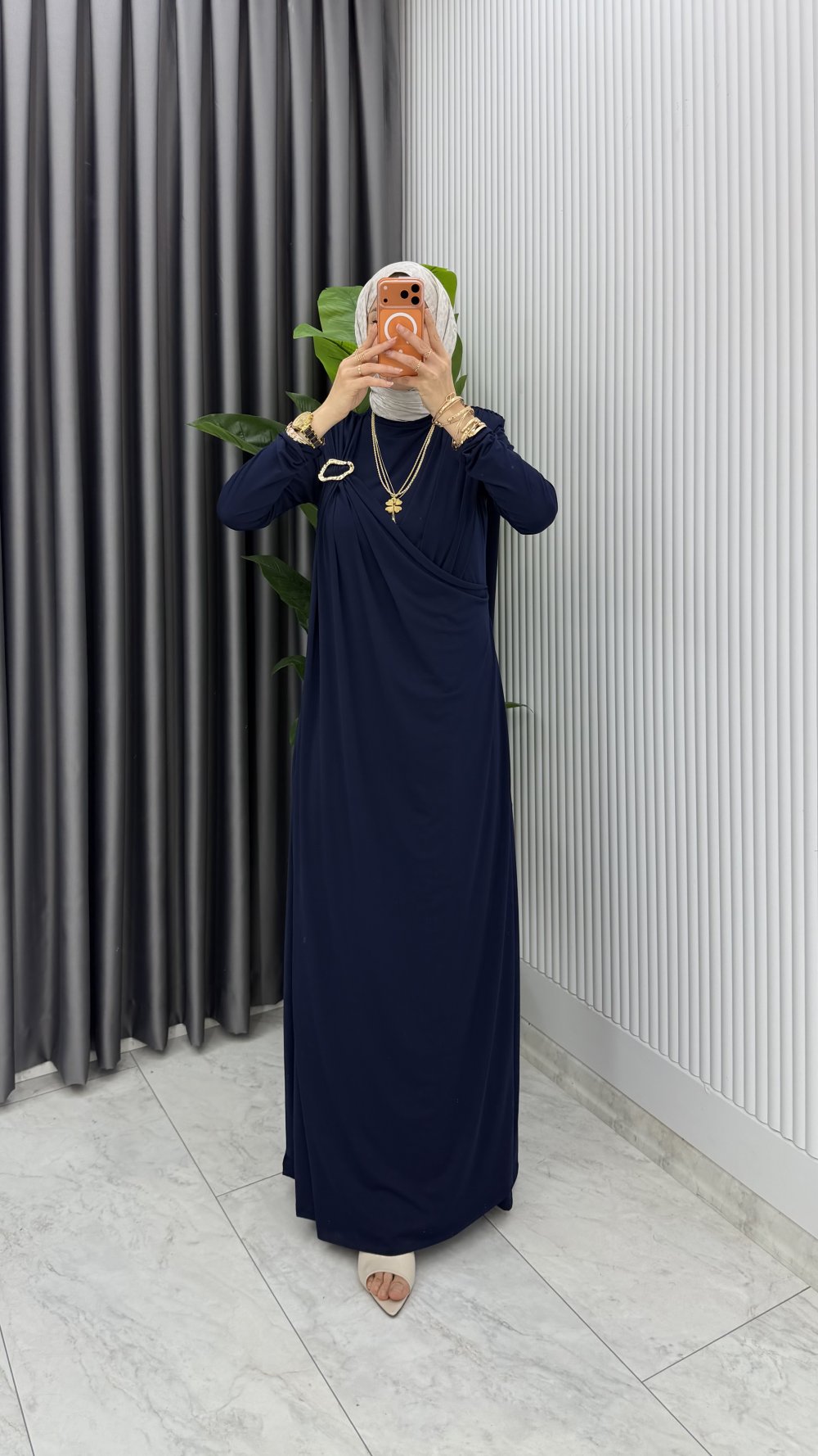 Lacivert Alya Tasarım Elbise Tesettür Giyim