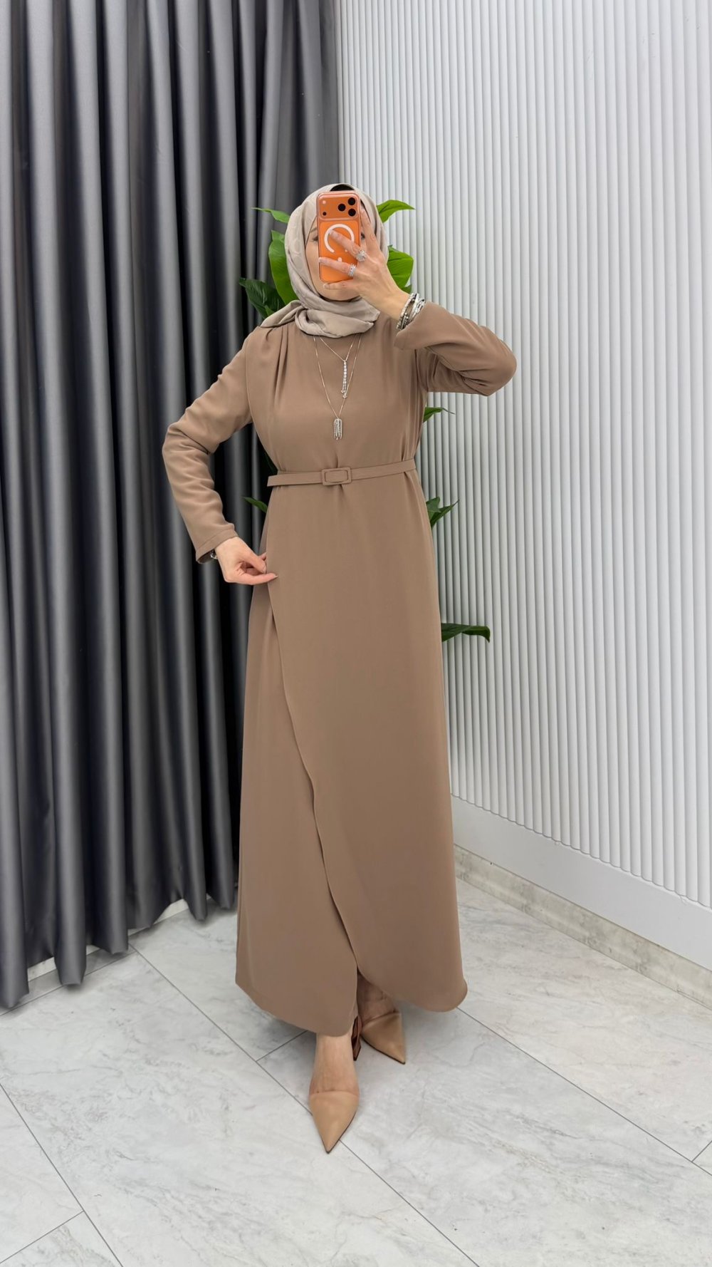 Latte Kemerli Nalan Tulum Elbise Tesettür Giyim
