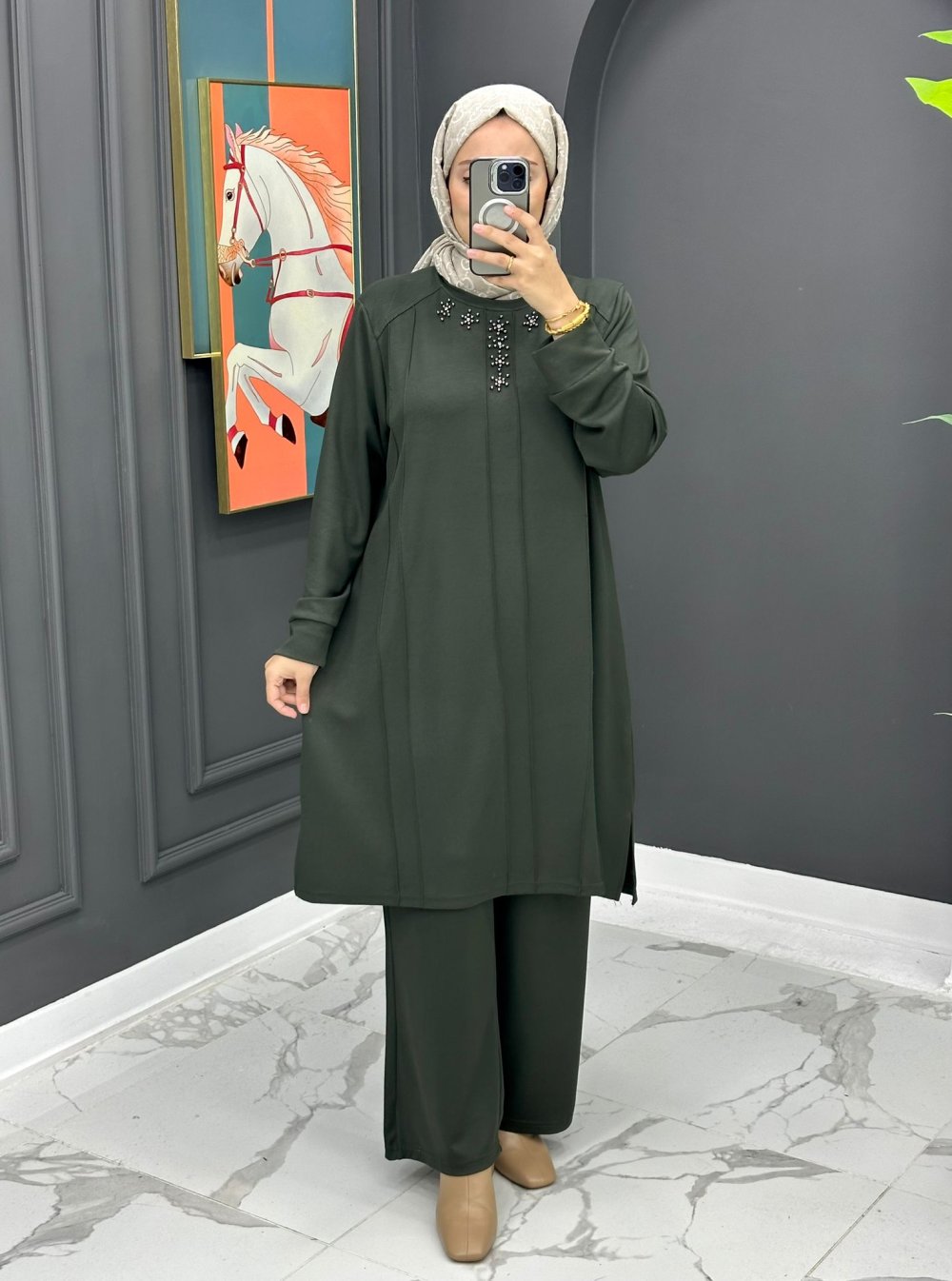 Liva Taşlı Takım - Haki