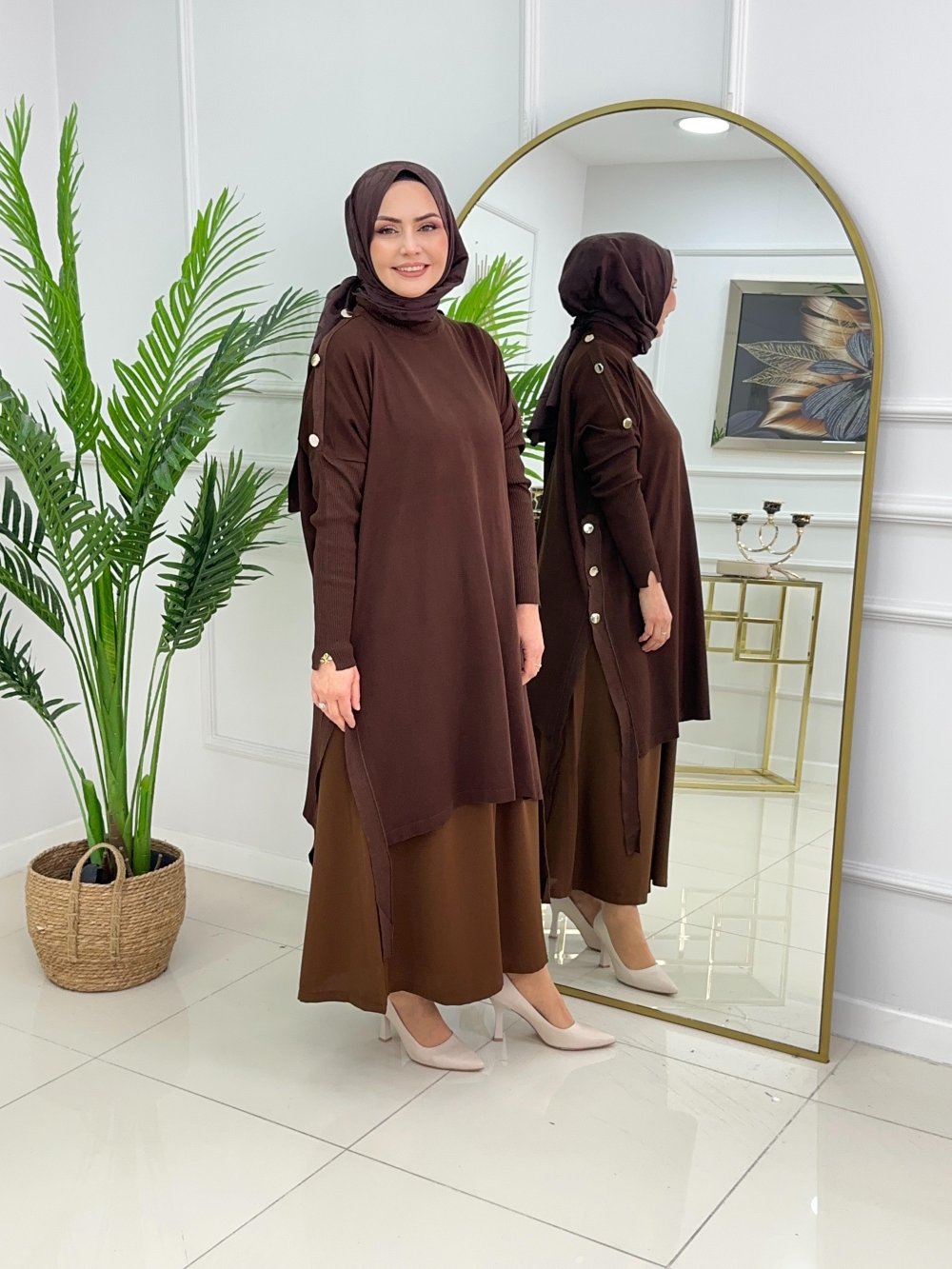 LUMİA MERSERİZE TUNİK - ACI KAHVE