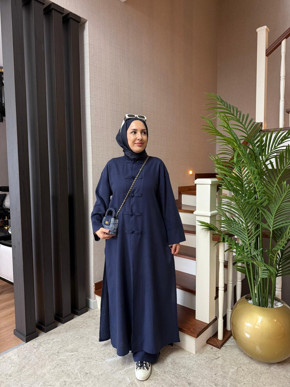 Kap boy 135 cm’dir. Önü el işi düğme detaylıdır.