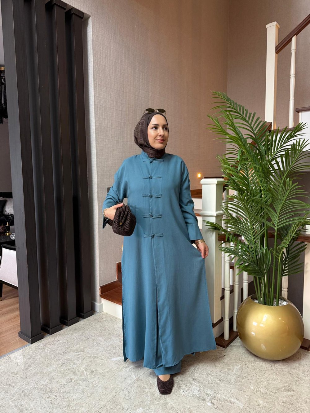 Kap boy 135 cm’dir. Önü el işi düğme detaylıdır.