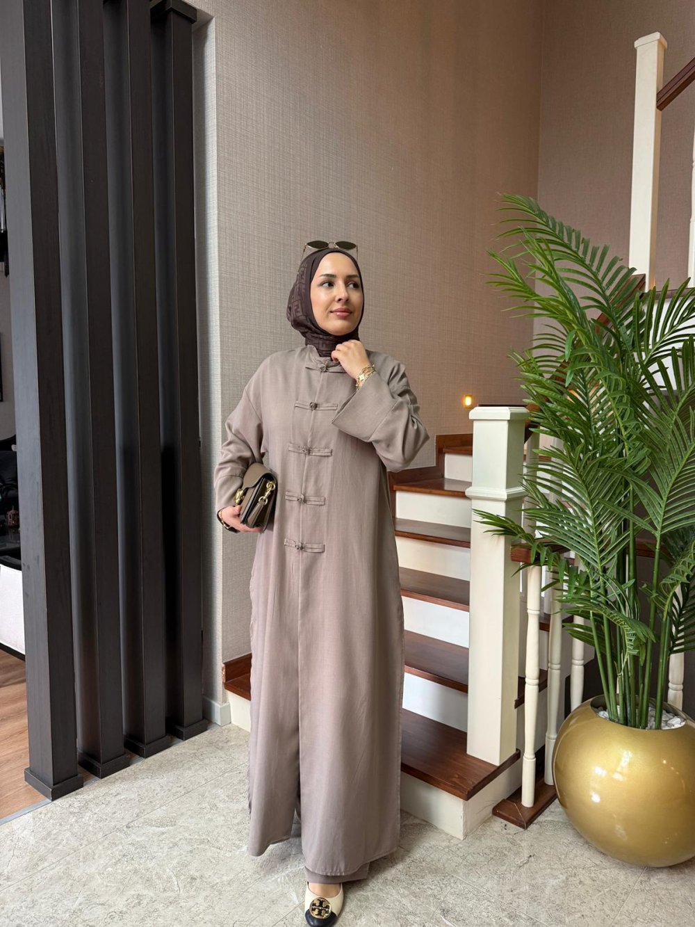 Kap boy 135 cm’dir. Önü el işi düğme detaylıdır.