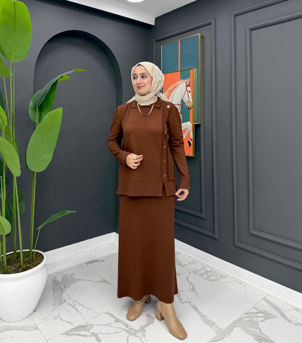 Merserize Triko Takım - Kahve