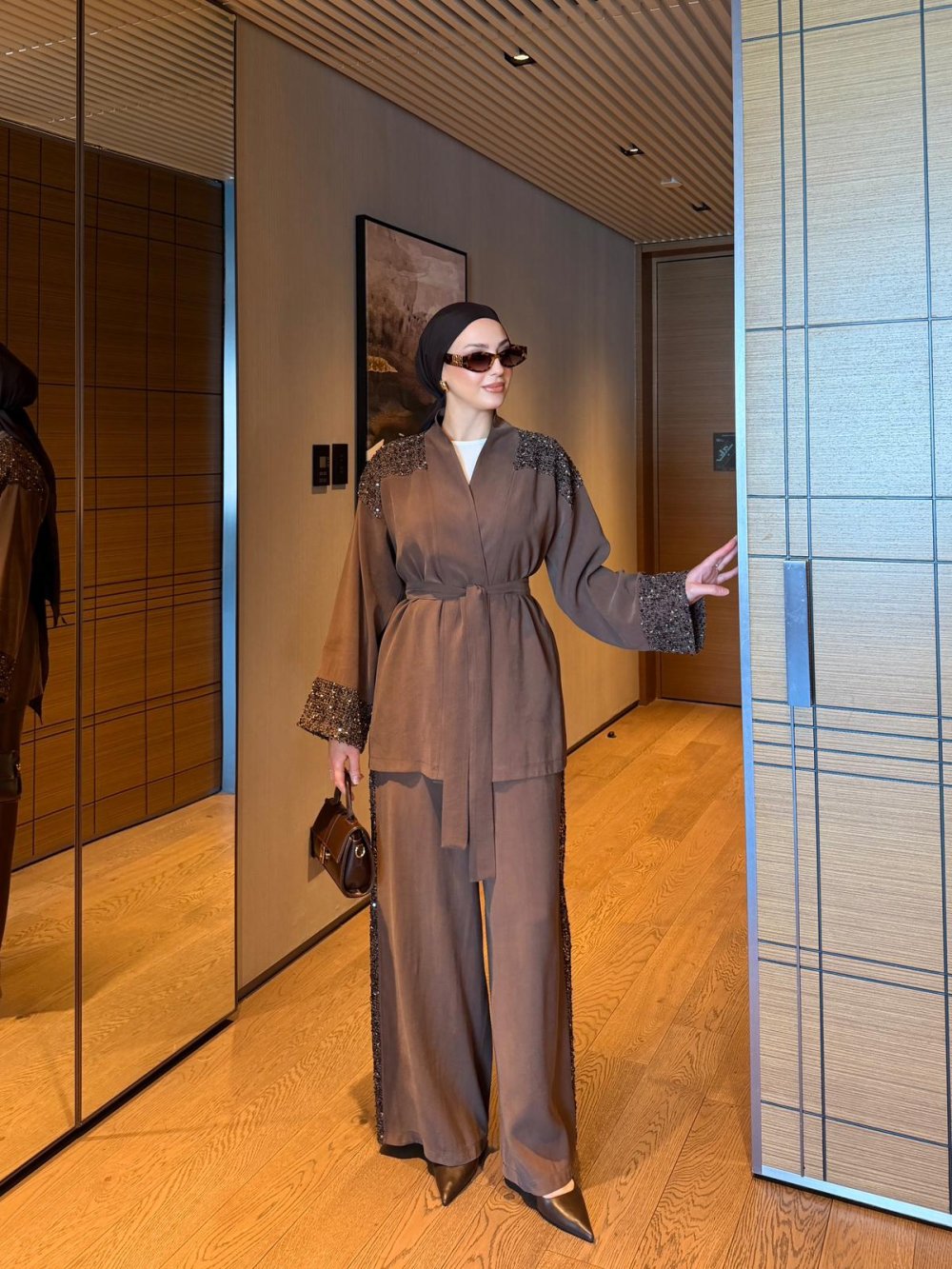 Üst üründe kollarında ve omuz uçlarında file detayı vardır.
