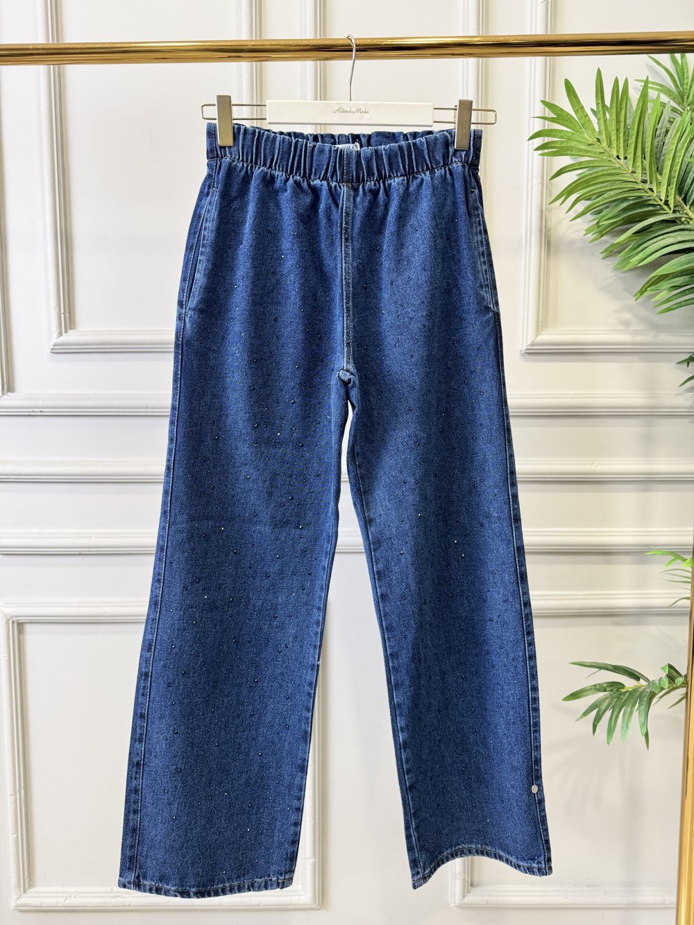 MRW1693 Palazzo Taşlı Denim Pantolon Lacivert