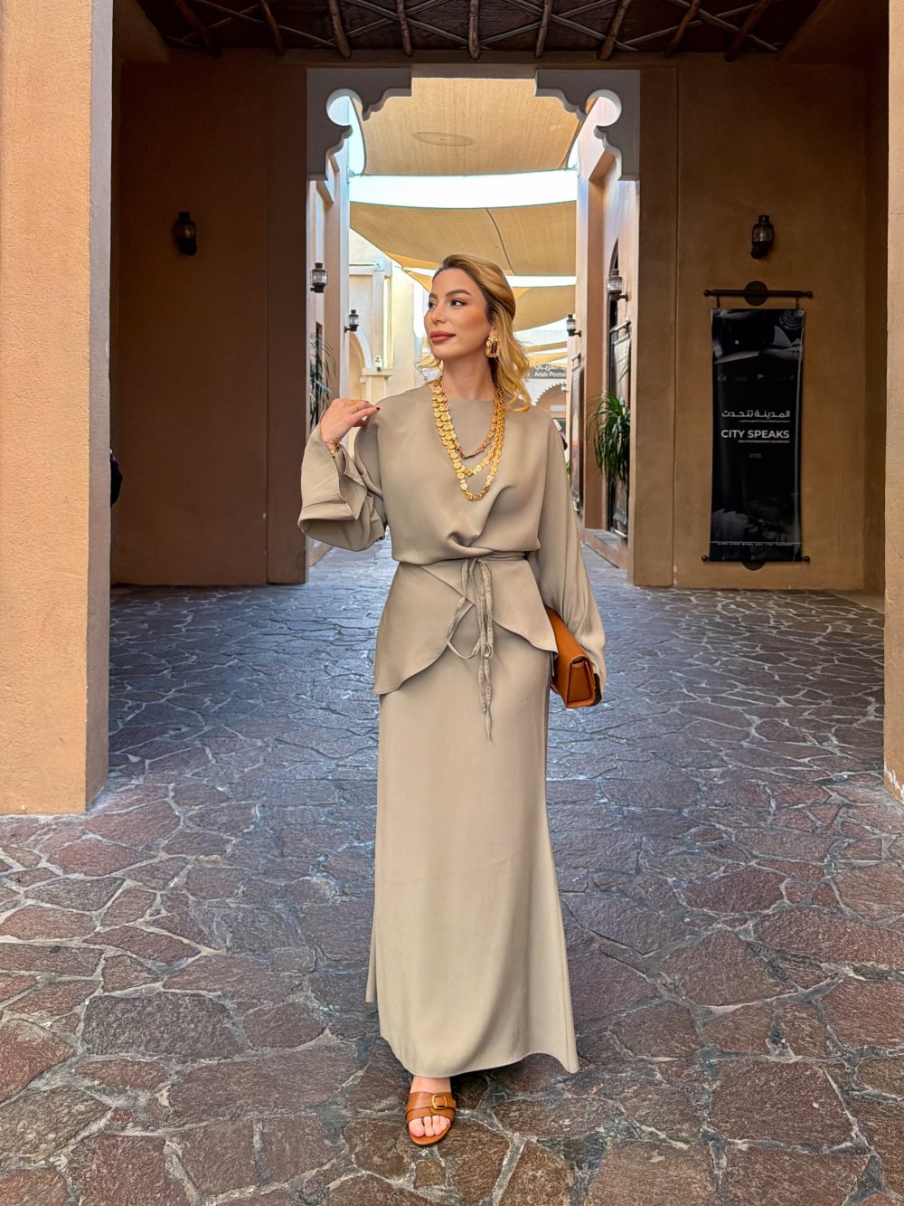 Takım Tunik  Etek Ucu Aimetrik Bağlama Detaylıdır.