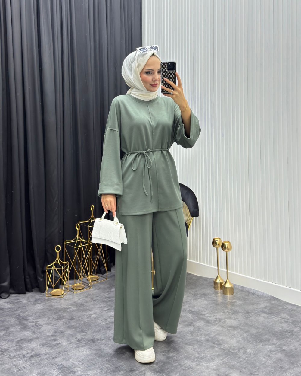 Yeni sezon kolu katlama detaylı ,seyyar kuşaklı ve pantolon beli lastiklidir. Tuniğimizin önü kısa arkası uzundur