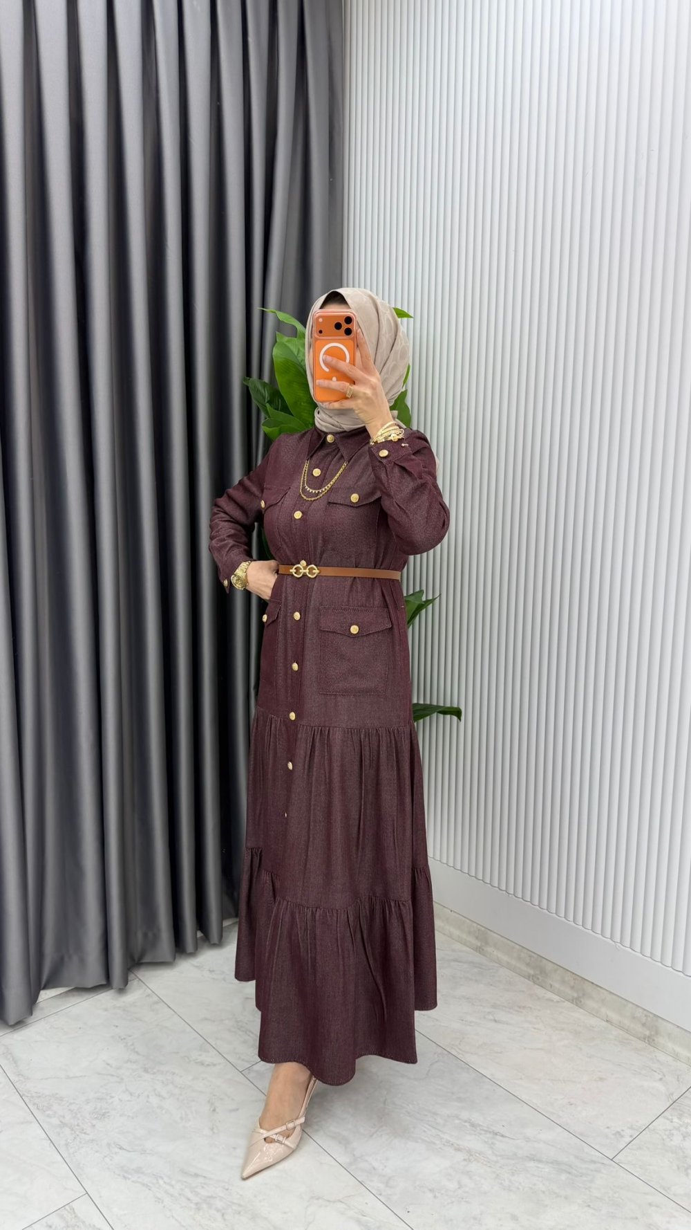 Mürdüm Kemerli Eslem Kot Elbise Tesettür Giyim