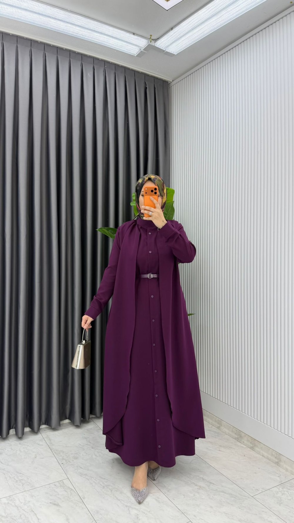 Mürdüm Premium Pera Elbise Ferace Tesettür Giyim