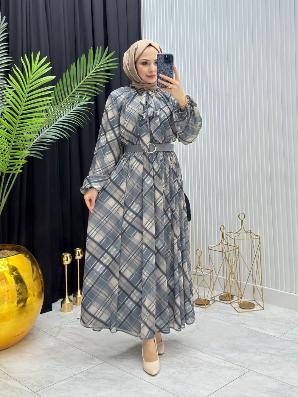 NİHAL ELBİSE GRİ Gri