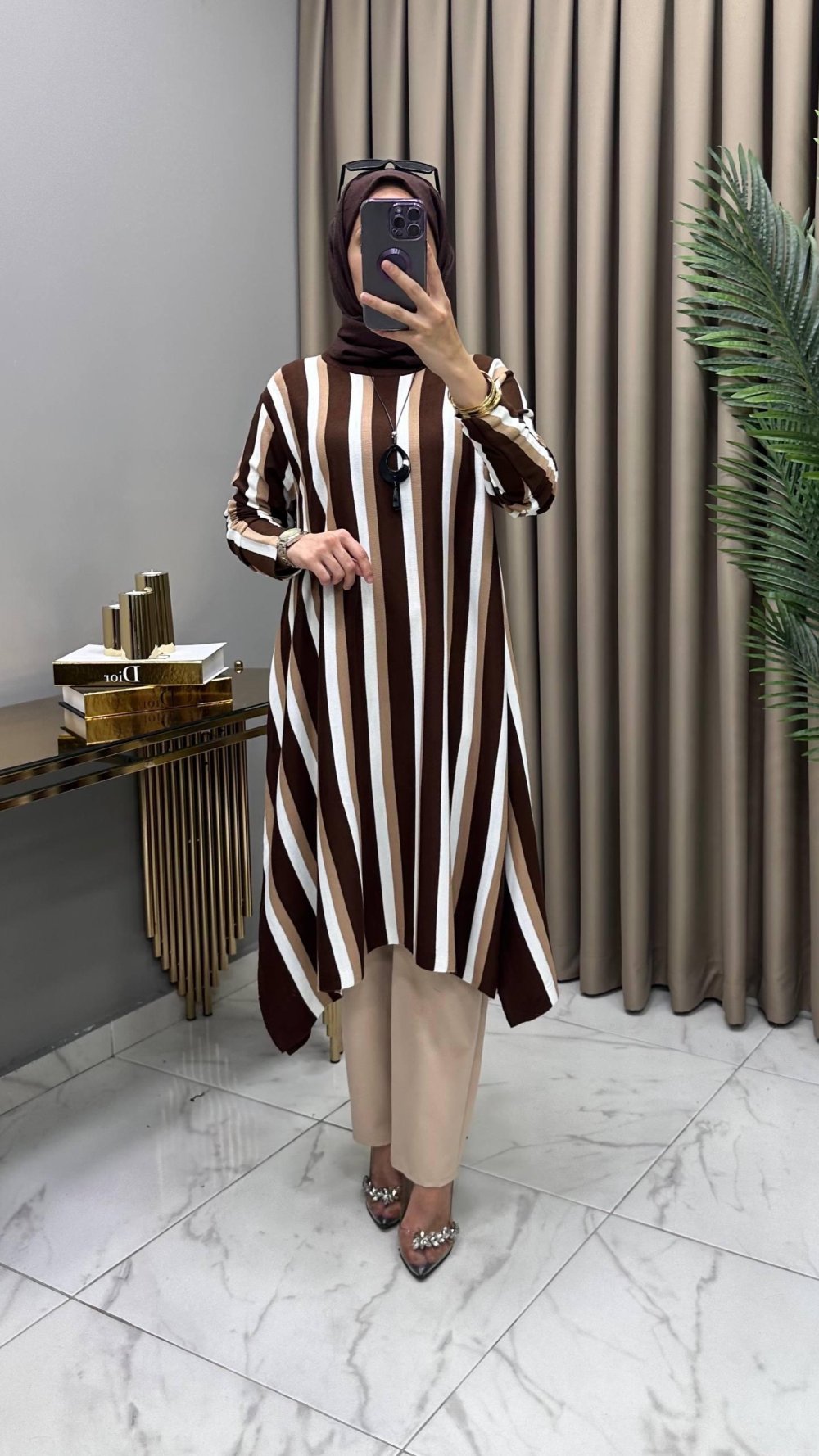 Nihal Triko Tunik Kahve Kolye Hediyeli