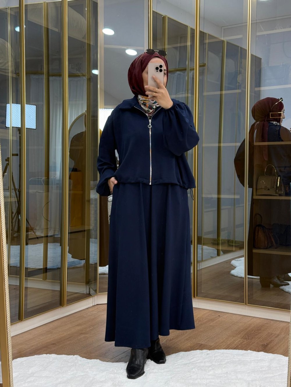 •  omuzu büzgülü ceket etek takım   •