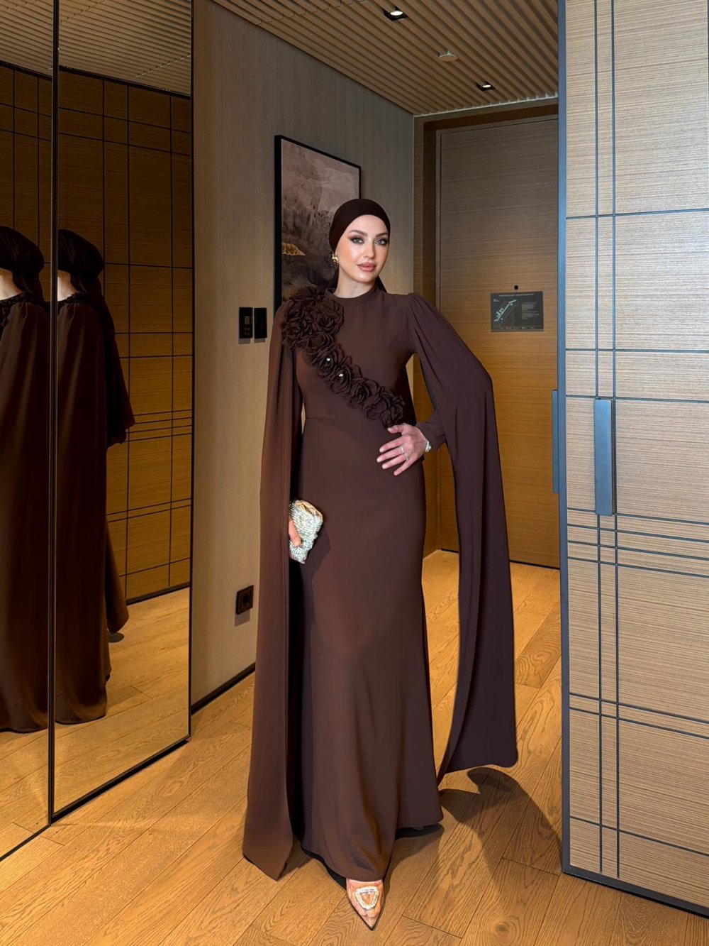Kolları pelerin detaylıdır.