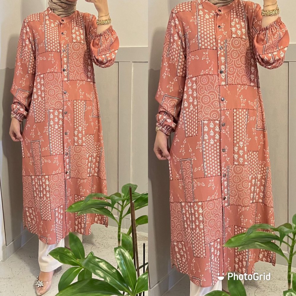 Tunik kolları lastiklidir, boydan düğmelidir.