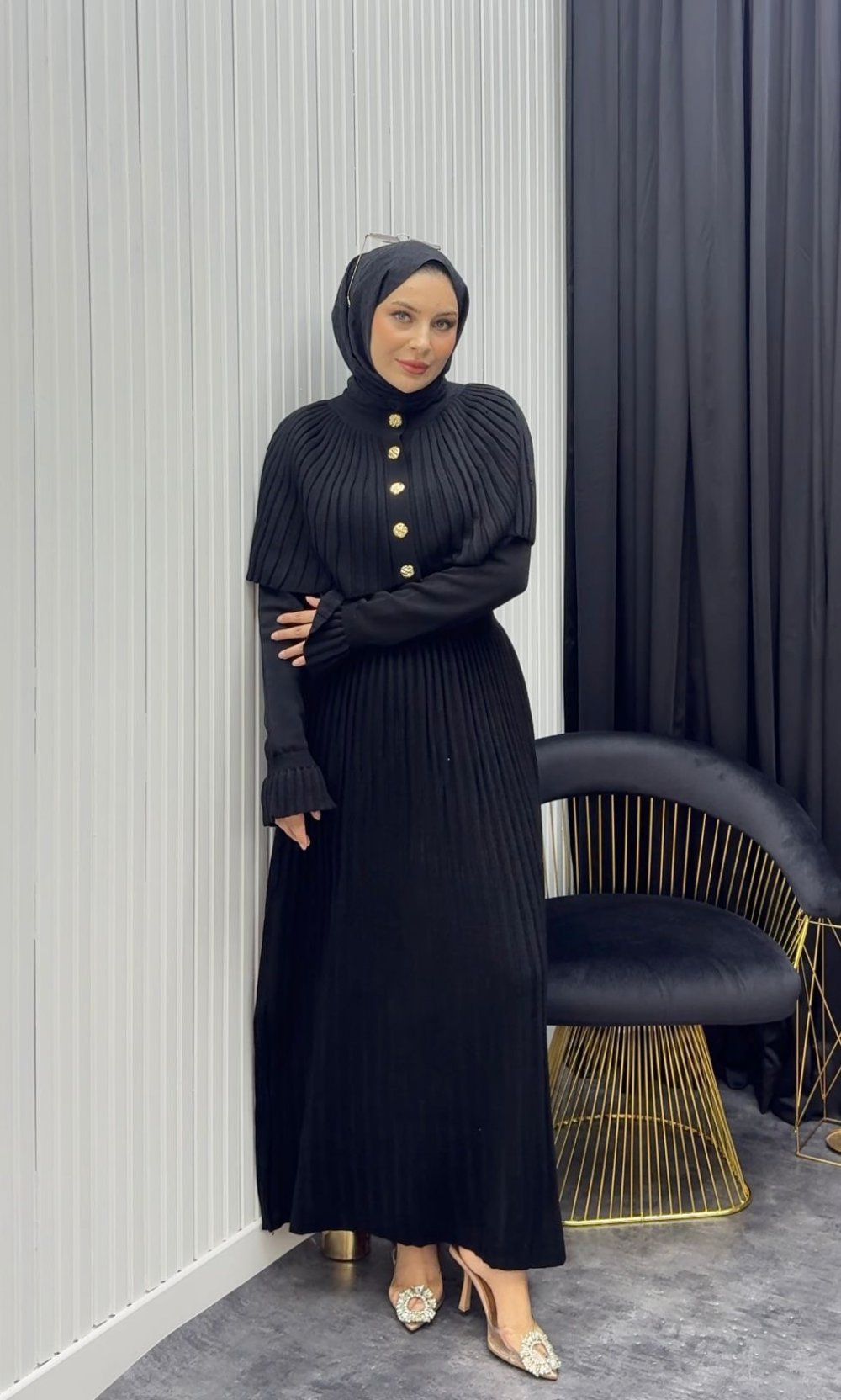 Pelerin Elbise Siyah Siyah