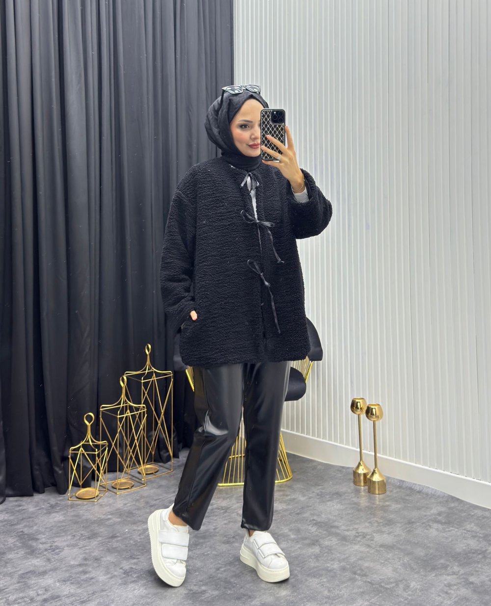 Peluş Mont Siyah Siyah
