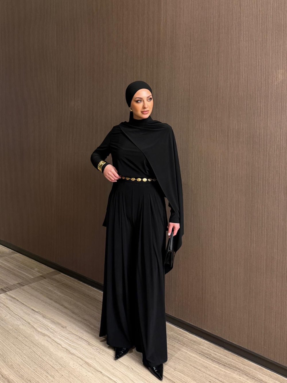 Pantolon beli lastikli önden ikişerli pileleri mevcuttur.