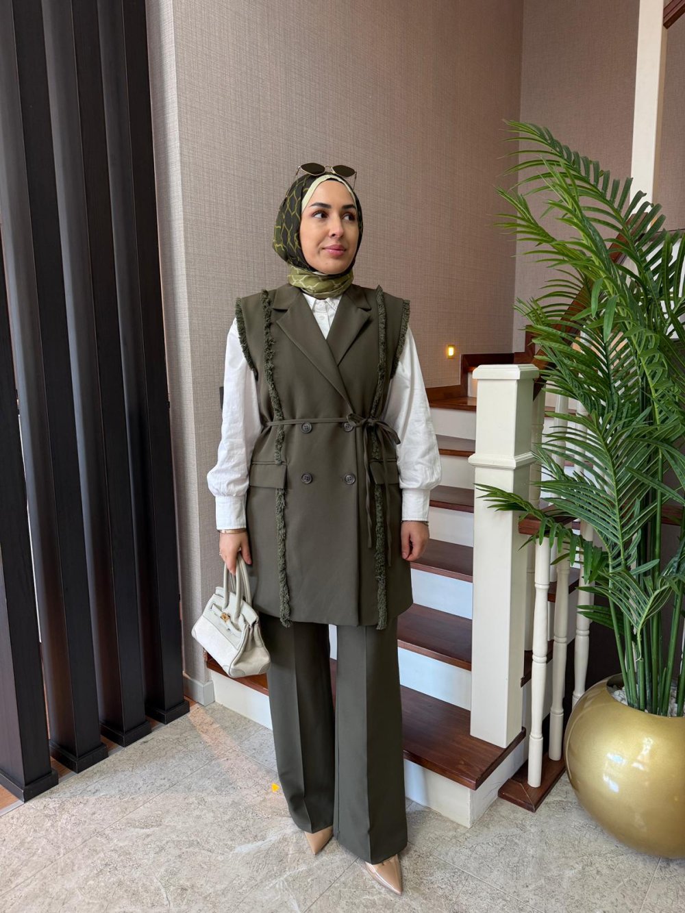 Püskül Detay Yelek Takım Haki