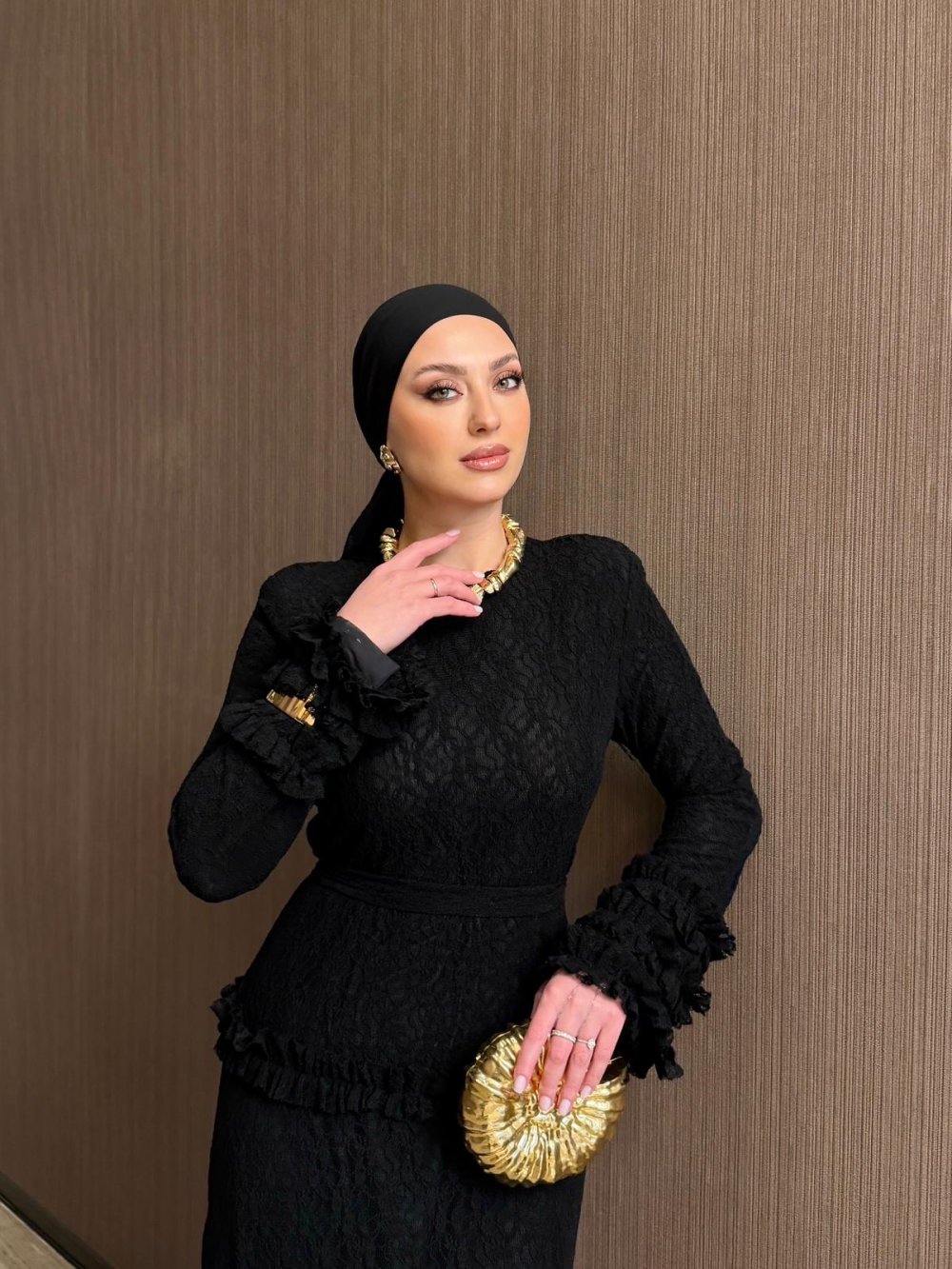 Kollarında ve eteklerin de Fırfır detayları vardır.
