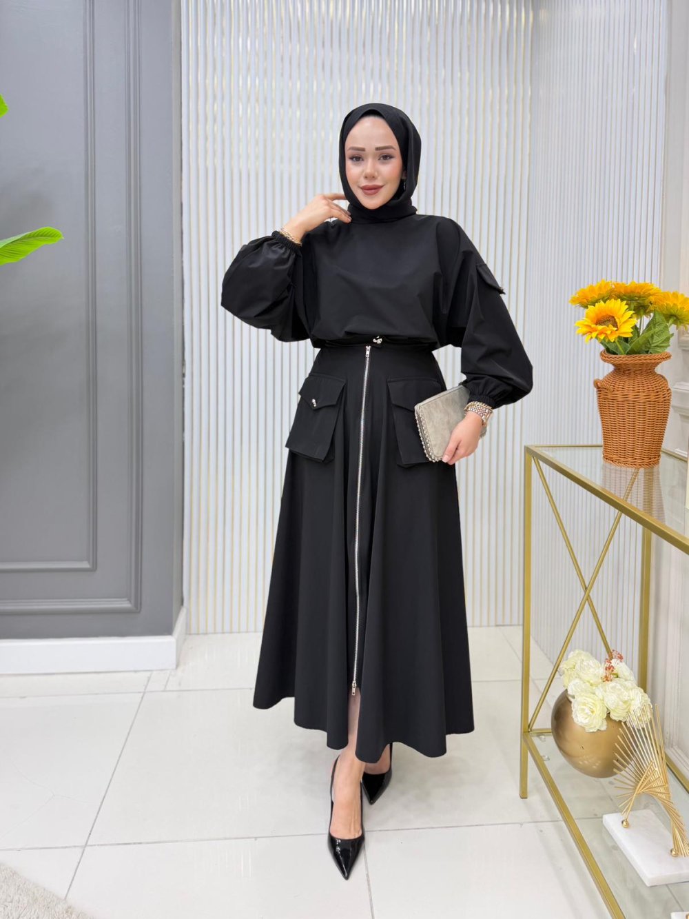 Takım Etek Tam Boy Fermuar Detaylıdır.