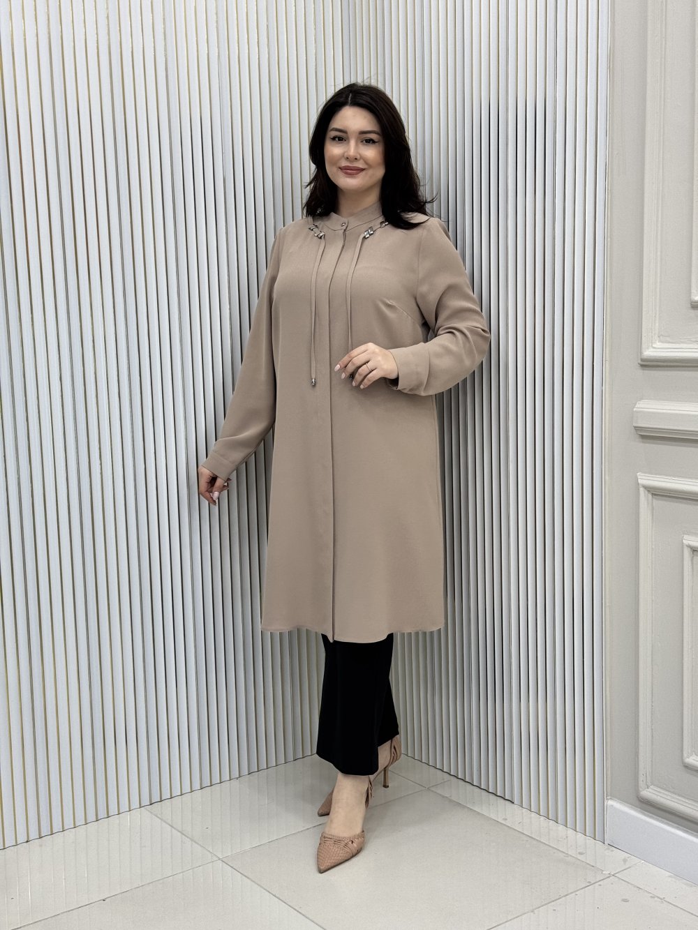 Boydan düğmeli, yaka kısmında taş detaylıdır.