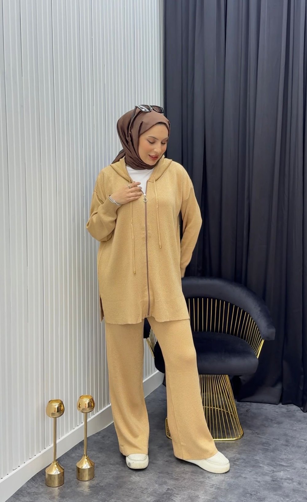 tunik kapüşonlu önden fermuarlı pantolon beli lastiklidir